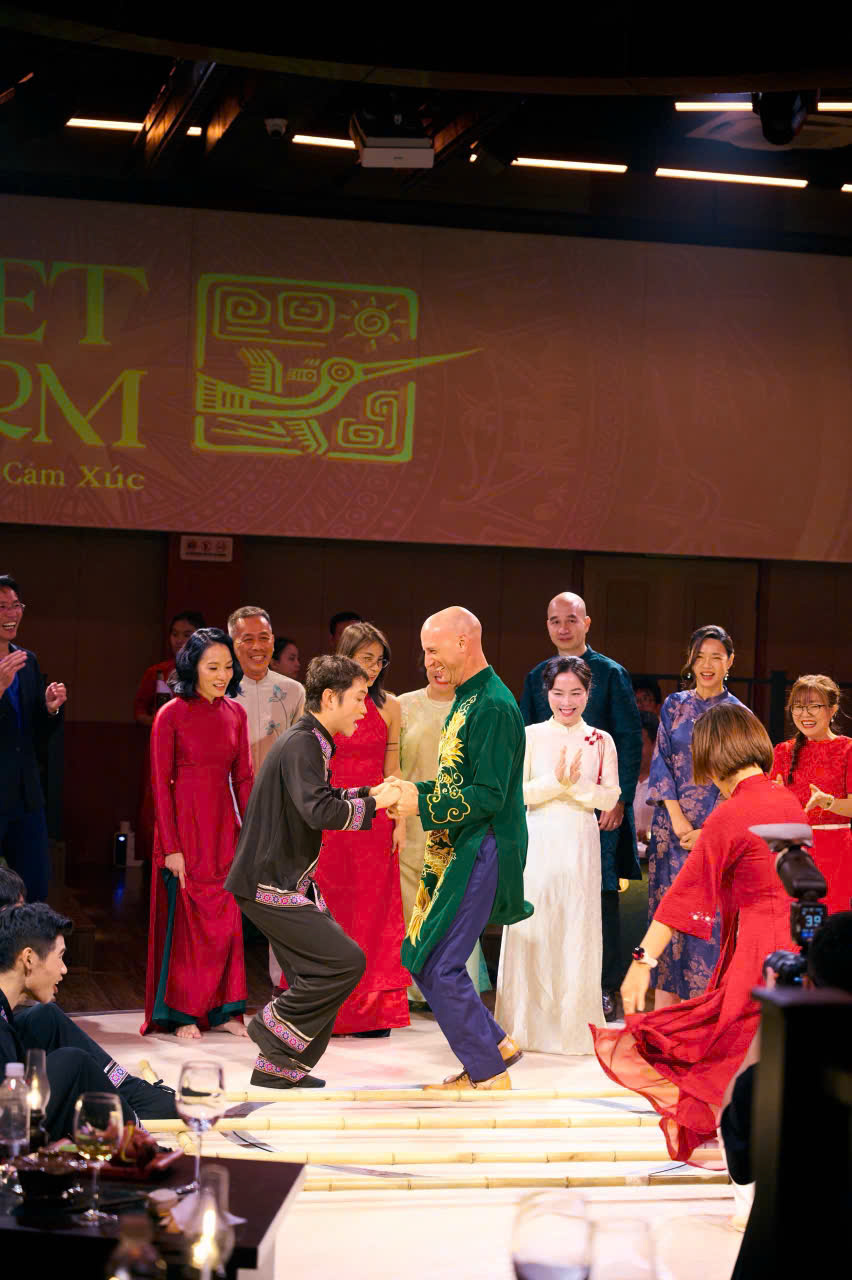 Under the guidance of Director Nguyen Huu Thanh, the program is a continuous, unified flow of sound, lighting, choreography, and flavor. The core principle of VietCharm is absolute synchronization: when the stage recreates the epic ambiance of the Northwest highlands, diners are served dishes featuring ingredients native to those majestic mountains. Conversely, when the narrative shifts to the solemnity of the royal court, the regal flavors of imperial cuisine are immediately presented. The meticulous attention to detail by Chef Huynh Phi Nam Phong ensures that the audience doesn't just "watch" the culture—they truly "taste" and "live" within it.